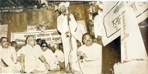 सभेत बोलताना तत्कालीन आमदार वीरकुमार पाटील. उपस्थितांमध्ये किशोर पवार, एस. एम. जोशी, बाळासाहेब ठाकरे व अन्य.