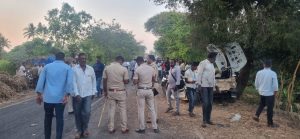 शुक्रवारी संध्याकाळी हा अपघात झाल्यानंतर घटनास्थळी मोठी गर्दी झाली. नेमके कशाचा अपघात झाला याची माहिती प्रत्यक्ष पाहूनही येत नव्हती. मोटार झाडावर जाऊन चक्काचूर झालेली व दोन दुचाकी इतरत्र पडलेल्या होत्या. दुचाकीवरील मृतदेह रस्त्यावर रक्ताच्या थरोळ्यात पडले होते. तर कारमधील मृतदेह बाहेर काढण्यास मोठे प्रयत्न करावे लागले. रस्ता दुपदरी असल्याने ओव्हरटेक करण्याच्या प्रयत्नात हा अपघात झाला असावा, असा संशय पोलिसांनी व्यक्त केला आहे.
