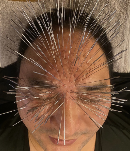 पूर्ण चेहऱ्यावर सुया टोचून घेत उपचार