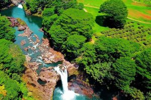 हवाईमध्ये एक असा धबधबा आहे, जेथे आकाशात नव्हे तर धबधब्यातच पूर्ण इंद्रधनुष्य तयार होते. याचे नाव रेनबो फॉल्स असून लोक त्याला रेनबो वॉटरफॉलही म्हणतात. हे अनोखे दृश्य अमेरिकेच्या हवाई बेटाच्या बिग आयलँडवरील हिलो शहरानजीक दिसते. दररोज सकाळी सूर्य उगवताच त्याची किरणे 80 फूट उंच या धबधब्याच्या प्रवाहावर पडतात, तेव्हा तेथे 7 रंगांचा पूर्ण गोलाकार इंद्रधनुष्य तयार होते. हे दृश्य इतके सुंदर आणि दुर्लभ आहे की, जगभरातील फोटोग्राफर आणि पर्यटक सकाळी 7 वाजल्यापासूनच कॅमेरे घेऊन रांगा लावत असतात. वाइलुकु नदीतून कोसळणारा हा धबधबा हिलो शहरापासून केवळ 2 किलोमीटर अंतरावर आहे.