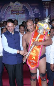 ‘जागतिक पटलावर महाराष्ट्राच्या खेळाडूंनी आपली छाप पाडली आहे, ही अभिमानास्पद बाब आहे,‘ असे मुख्यमंत्री देवेंद्र फडणवीस यांनी नमूद केले. त्यांनी ऑलिम्पिक, कॉमनवेल्थ व एशियन गेम्समध्ये भारतीय खेळाडूंच्या कामगिरीचे कौतुक केले. ‘मागील काही काळात मॅटवरील कुस्तीला अधिक प्राधान्य मिळाले होते, मात्र आता मातीवरील कुस्तीने दमदार पुनरागमन केले आहे. कुस्तीच्या माध्यमातून भारताला पहिले ऑलिम्पिक पदक मिळवून देणारे खाशाबा जाधव होते. आज विजय चौधरी, सोनाली मंडलिक यांसारखे खेळाडू परदेशी प्रतिस्पर्ध्यांवर मात करत आहेत,‘ असे त्यांनी सांगितले.