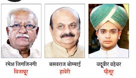 धारवाडमध्ये प्रल्हाद जोशी यांना तिकीट देण्यात आले आहे. तर माजी मुख्यमंत्री व विद्यमान आमदार बसवराज बोम्माई यांना हावेरी लोकसभा मतदारसंघातून निवडणूक रिंगणात उतरविण्यात आले आहे. माजी मंत्री व्ही. सोमण्णा यांना तुमकूरमधून उमेदवारी जाहीर झाली आहे. महत्त्वाचे म्हणजे म्हैसूरचे खासदार प्रतापसिंह यांचे तिकीट कापण्यात आले आहे. त्यांच्या जागी म्हैसूर वडेयर राजघराण्याचे यदूवीर कृष्णदत्त चामराज वडेयर यांना निवडणूक आखाड्यात उतरविण्यात आले आहे. सत्ताधारी काँग्रेसच्या बळापुढे त्यांचा कस लागणार आहे.