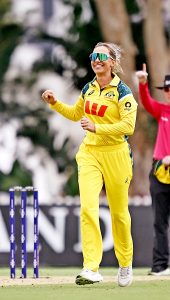 प्रत्युत्तरादाखल खेळताना कर्णधार अॅलिसा हिली आणि लिचफिल्ड यांनी ऑस्ट्रेलियाच्या डावाला दमदार सुरुवात करुन देताना 10.3 षटकांत 55 धावांची भागिदारी केली. श्रीचरणीने लिचफिल्डला यष्टीरक्षक घोषकरवी यष्टीचीत केले. तिने 32 चेंडूत 6 चौकारांसह 32 धावा जमविल्या. श्रीचरणीने ऑस्ट्रेलियाला याच षटकातील पुढच्या चेंडूवर आणखी एक धक्का देताना व्हॉलला मानधनाकरवी झेलबाद केले. अॅलिसा हिली आणि मुनी यांनी तिसऱ्या गड्यासाठी 64 धावांची भागिदारी केली. हिलीने 70 चेंडूत 4 चौकारांसह 50 धावा जमविल्या. क्रांती गौडने तिला झेलबाद केले.