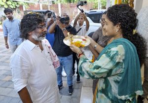 झारखंड उच्च न्यायालयाने शुक्रवारी जमीन घोटाळ्याशी संबंधित मनी लाँड्रिंग प्रकरणात झारखंडचे माजी मुख्यमंत्री हेमंत सोरेन यांचा जामीन अर्ज मंजूर केला. न्यायमूर्ती रंगन मुखोपाध्याय यांच्या न्यायालयाने या याचिकेवर तीन दिवसांची चर्चा आणि सुनावणी पूर्ण केल्यानंतर 13 जून रोजी निर्णय राखून ठेवला होता. जमीन घोटाळ्याप्रकरणी हेमंत सोरेन यांना ईडीने 31 जानेवारीच्या रात्री अटक केली होती. तेव्हापासून ते रांची येथील बिरसा मुंडा मध्यवर्ती कारागृहात न्यायालयीन कोठडीत होते. आता जामीन मिळाल्यानंतर हेमंत सोरेन तुऊंगातून बाहेर आले. रांची तुऊंगातून तब्बल पाच महिन्यांनंतर त्यांची सुटका झाली. कारागृहातून बाहेर येताना हेमंत यांच्यासोबत त्यांची पत्नी कल्पना सोरेन आणि इतर लोकही होते.