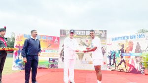 बेळगाव : मराठा सेंटरतर्फे शौर्यवीर रन 2025 या प्रेरणादायी धावण्याच्या स्पर्धेचे आयोजन शिवाजी मैदान, कॅम्प येथे करण्यात आले होते. भारतीय सेनेच्या 79 व्या इन्फंट्री डे निमित्त हा उपक्रम राबविण्यात आला होता. शौर्यवीर रन म्हणजे “स्पिरिट ऑफ द इन्फंट्री“ धैर्य, सहनशक्ती आणि एकतेचा उत्सव यांचे प्रतीक आहे. याचबरोबर बेळगावतील युवा खेळाडूना प्रोत्साहन देणे, राष्ट्रीय अभिमान, आरोग्य जागरूकता आणि भारतीय पायदळ दलाबद्दल कृतज्ञतेचा संदेश प्रभावीपणे पोहोचविणे हे आमचे ध्येह आहे, असे प्रतिपादन मराठा रेजिमेंटचे ब्रिगेडियर जॉयदीप मुखर्जी यांनी केले. या स्पर्धा दरम्यान मराठा लाईट इन्फंट्रीतर्फे ‘शौर्यवीर रन 2025’ या प्रेरणादायी धावण्याच्या स्पर्धेमध्ये हजारो स्पर्धाकांनी भाग घेतला होता. पाच ते पंन्नास वर्षा पर्यंत पुरूष व महिलांचा सहभाग होता तर विविध गटातील विजेत्याना प्रमाणपत्र पदक देऊन गौरविण्यात आले.