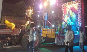 संध्याकाळी गावातून भव्य मिरवणूक काढण्यात आली. या मिरवणूकीला गावातील जनसमुदाय लोटला होता.पारंपारिक वाद्यांच्या गजरात निघालेली मिरवणूक अतिशय आकर्षक सजली होती. गावातील मुख्य रस्त्यावरून जाताना फटाक्याची आकर्षक रोषणाई करण्यात आली.