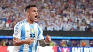88 व्या मिनिटाला रिबाऊंड झालेल्या चेंडूवर लॉटेरो मार्टिनेझने गोल नोंदवल्यामुळे विद्यमान विजेत्या अर्जेन्टिनाने चिलीवर 1-0 असा विजय मिळवित कोपा अमेरिका फुटबॉल स्पर्धेच्या उपांत्यपूर्व फेरीत स्थान मिळविले.