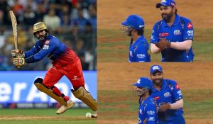 मुंबईविरुद्ध गुरुवारी झालेल्या सामन्यात दिनेश कार्तिकने 23 चेंडूत नाबाद 53 धावांची तुफानी खेळी साकारली. दिनेश कार्तिक मुंबई इंडियन्सविरुद्ध फलंदाजी करत असताना रोहित शर्मा त्याच्यासोबत मस्ती करत होता. रोहित दिनेश कार्तिकला म्हणत होता, शाब्बास डीके! त्याला टी-20 विश्वचषकात निवडीसाठी जोर लावायचा आहे. रोहितची ही कमेंट स्टंपच्या माईकमध्ये रेकॉर्ड झाली. या घटनेचा व्हिडिओ सध्या सोशल मीडियावर तुफान व्हायरल होत आहे.