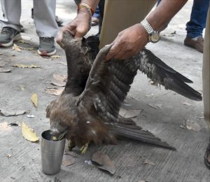 जखमी घारीला अलगदरित्या फांदीवरून उतरविण्यात आले. थकलेल्या पक्ष्याला पाणी पाजून जिवदान दिले.