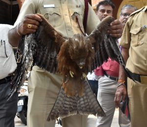 फांदीमध्ये अडकलेल्या घारीला दिले जीवनदान