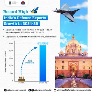 आर्थिक वर्ष 2024-25 मध्ये संरक्षण सार्वजनिक क्षेत्रातील उपक्रमांच्या निर्यात कामगिरीत 42.85 टक्के वाढ झाल्याचे संरक्षण मंत्रालयाने एप्रिलमध्ये दिलेल्या एका पूर्वीच्या प्रसिद्धीपत्रकात म्हटले होते. भारताची ही कामगिरी स्वदेशी संरक्षण उत्पादनांना आंतरराष्ट्रीय स्तरावर मिळालेली मजबूत स्वीकृती आणि जागतिक पुरवठा नेटवर्कमध्ये एकत्रित होण्याची या क्षेत्राची क्षमता दर्शवते, असेही स्पष्ट करण्यात आले होते.