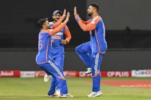 द.आफ्रिका 17.5 षटकांत सर्वबाद 141 (रिकल्टन 21, स्टब्ज 11, हेन्रिक क्लासेन 25, यान्सेन 12, कोएत्झी 23, वरुण चक्रवर्ती व रवि बिश्नोई प्रत्येकी तीन बळी).