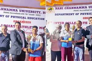 बेळगाव : राणी चन्नम्मा विद्यापीठ आयोजित 9 व्या आंतर महाविद्यालयीन अॅथलेटिक्स क्रीडा स्पर्धेत 251 गुणासह केएलई लिंगराज महाविद्यालयाने सर्वसाधारण विजेतेपद पटकावले. पुऊषगटात 147 गुणासह लिंगराज महाविद्यालयाने विजेतेपद, भरतेश महाविद्यालयाने 24 गुणांसह उपविजेतपद मिळविले. महिलागटात 97 गुणासह केएलई लिंगराज कॉलेजने विजेतेपद तर भाऊराव काकतकर महाविद्यालयाने 46 गुणासह उपविजेतेपद पटकावले. लिंगराजच्या भूषण पाटीलने 2048 गुणासह तर महिला गटात वैभवी बुद्रुकने 1891 गुणासह सर्वोत्तम अॅथलिटसचा बहुमान मिळवला.
