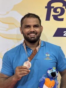 राष्ट्रीय क्रीडा स्पर्धेत महाराष्ट्र केसरी विजेत्या मल्लांनीही ठसा उमटविला. भाग्यश्री फंड पाठोपाठ हर्षवर्धन सदगीर, अमृता पुजारी हे महाराष्ट्र केसरी विजेते मल्ल राष्ट्रीय क्रीडा स्पर्धेत पदकाचे मानकरी ठरले आहेत. रोशनाबाद येथील योगस्थळ हॉलमधील कुस्ती मैदानात फ्रीस्टाईल 125 किलो वजनी गटात हर्षवर्धन सदगीरने कांस्यपदकावर नाव कोरले. दिल्लीच्या लक्ष्य विरूध्द झुंजताना नाशिकच्या हर्षवर्धनने तीन गुणांची आघाडी घेतली होती. दुसऱ्या फेरीत लपेट डावावर चितपट कुस्ती करीत त्याने कांस्यपदक जिंकले. पुण्यात 2020 साली महाराष्ट्र केसरीची गदा उंचविणाऱ्या हर्षवर्धनचे हे राष्ट्रीय क्रीडा स्पर्धेतील पहिलेच पदक होय.