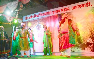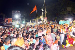 शिवप्रेमींचा उत्साह : लक्षवेधी चित्ररथ मिरवणूक, भगवेमय वातावरण : ढोल-ताशांचा गजर, लाठ्यांची प्रात्यक्षिके