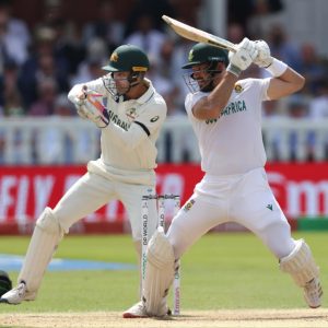येथील लॉर्ड्स मैदानावर ऑस्ट्रेलियाने अंतिम सामन्यात दक्षिण आफ्रिकेला आयसीसी जेतेपदाचा दुष्काळ संपवण्यासाठी 282 धावांचे आव्हान दिले आहे. अंतिम सामन्याच्या पहिल्या दोन दिवसांत 28 विकेट्स पडल्यानंतर, ऑस्ट्रेलियाने दुसऱ्या डावात 250 धावांच्या पुढे आपली आघाडी वाढवली. दिद्यमान विजेत्या ऑसींची देहबोली पाहून त्यांनीही हार पत्करली असल्याचे दिसतेय. टेम्बाच्या मांडीचे स्नायू ताणले गेले तरीही तो देशाला 27 वर्षानंतर आयसीसी स्पर्धा जिंकून देण्यासाठी मैदानावर उभा राहिला. मार्करमने झुंजार व अविस्मणीय शतकी खेळी केली.