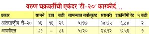- वरुण चक्रवर्तीनं ‘चेन्नई लीग’च्या चौथ्या विभागात खेळताना गोलंदाजीत विविध प्रयोग करण्यास प्रारंभ केला आणि 2018 साली तामिळनाडू ‘टी-20’ लीगचं अजिंक्यपद त्याच्या मदुराई संघाला मिळवून देण्यात मोलाचा वाटा उचलला...