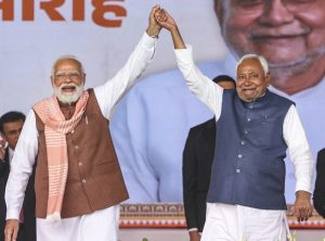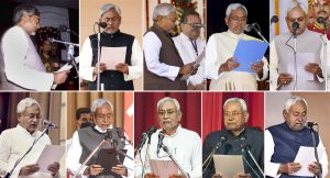बिहार विधानसभा निवडणुकीत प्रचंड विजय मिळविल्यानंतर आता नितीश कुमार यांनी दहाव्यांना मुख्यमंत्रीपदाची शपथ घेतली आहे. हा त्यांचा नवा विक्रम आहे. बिहारची राजधानी पाटणा येथील ऐतिहासिक गांधी पटांगणात लक्षावधी लोकांच्या साक्षीने शपथविधी समारंभ गुरुवारी पार पडला. नितीश कुमार यांच्यासह भारतीय जनता पक्षाच्या 2 उपमुख्यमंत्र्यांनही शपथग्रहण केले आहे. त्यांची नावे सम्राट चौधरी आणि विजय सिन्हा अशी आहेत. 26 मंत्र्यांनाही या कार्यक्रमात पद आणि गोपनीयतेची शपथ राज्यपाल अरीफ मोहम्मद खान यांनी दिली.