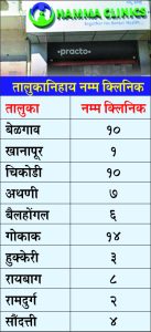 जिल्ह्यात पहिल्या टप्प्यात 36 तर दुसऱ्या टप्प्यात 29 नम्म क्लिनिक स्थापन करण्यास राज्य सरकारने मंजुरी दिली आहे. क्लिनिकसाठी सार्वजनिक ठिकाणांना प्राधान्य देऊन जागेचा शोध घेण्यात येणार आहे. राज्य सरकारने आवश्यकतेनुसार 63 क्लिनिक यापूर्वीच स्थापन करण्यात आली आहेत. बेळगाव व चिकोडी शहरात प्रत्येकी 9 क्लिनिक सुरू करण्यात आली असून त्या सोबतच बसस्थानकांमध्येही नम्म क्लिनिक सुरू करण्याची तयारी आरोग्य विभागाकडून करण्यात येत आहे. लवकरच क्लिनिक सुरू करून सर्वसामान्यांसाठी खुली करण्यात येणार आहेत.