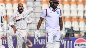 संक्षिप्त धावफलक : पाक प.डाव सर्व बाद 230 : शकील 84, रिझवान 71, साजिद खान 18, अवांतर 18, जेडेन सील्स 3-27, सिन्क्लेअर 2-61, वॉरिकन 3-69, मोती 1-48, विंडीज प.डाव 25.2 षटकांत सर्व बाद 137 : वॉरिकन नाबाद 31, सील्स 22, मोती 19, अवांतर 22, नौमन अली 5-39, साजिद खान 4-65.