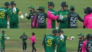 दक्षिण आफ्रिका आणि पाकिस्तान यांच्यातील दुसरा वनडे सामना गुरुवारी केपटाऊनमध्ये खेळला गेला. या सामन्यादरम्यान मोहम्मद रिझवान, हॅरिस रौफ आणि हेनरिक क्लासेन यांच्यात तुफान राडा झाला. दोन्ही संघाच्या या खेळाडूंनी एकमेकांना शिवीगाळ केल्याचा दावा करण्यात आला आहे. मात्र, आयसीसीने या प्रकरणाची अद्याप दखल घेतलेली नाही. आफ्रिकेचा संघ फलंदाजी करत होता. तेव्हा त्यांच्या डावाच्या 26 व्या षटकात हा गोंधळ झाला. पाकिस्तानसाठी हे षटक टाकण्यासाठी हॅरिस रौफ आला. या ओव्हरच्या शेवटच्या चेंडूनंतर रौफने क्लासेनकडे पाहत काहीतरी म्हटले. हे क्लासेनला आवडले नाही. या दरम्यान, रिझवानही तेथे पोहोचला आणि प्रकरण वाढले आणि खूपच गंभीर झाले. पंचांनी हस्तक्षेप केल्यामुळे हा वाद थांबला पण या वादाचे व्हिडिओ सोशल मीडियावर व्हायरल झाले आहेत.