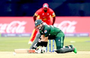 रिझवान आणि कर्णधार बाबर आझम यानी एकेरी आणि दुहेरी धावावर अधिक भर देत धावफलक हालता ठेवला. 15 व्या षटकातील चौथ्या चेंडूवर हेलिगरने बाबर आझमला मोव्हाकरवी झेलबाद केले. त्याने 33 चेंडूत 1 षटकार आणि 1 चौकारासह 33 धावा जमविल्या. बाबर आझम बाद झाला त्यावेळी पाकला विजयासाठी 24 धावांची जरूरी होती. गॉर्डनने फखर झमानला झेलबाद केले. त्याने 4 धावा जमविल्या. रिझवान आणि उस्मान खान यानी विजयाचे सोपस्कार पूर्ण केले. उस्मान खानने गॉर्डनच्या षटकातील तिसऱ्या चेंडूवर 2 विजयी धावा घेतल्या.