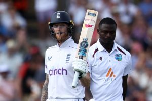 इंग्लंड प. डाव चहापानापर्यंत 53 षटकात 4 बाद 259 (क्रॉली 0, डकेट 71, पोप खेळत आहे 115, रुट 14, ब्रुक 36, स्टोक्स खेळत आहे 15, अवांतर 8, अल्झारी जोसेफ, सिल्स, सिंक्लेअर, शमार जोसेफ प्रत्येकी एक बळी)