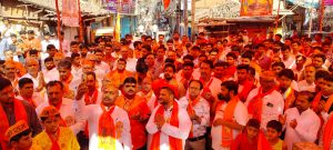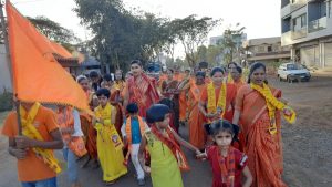 रामलल्ला मूर्ती प्रतिष्ठापनेचा सोहळा अपूर्व उत्साहात साजरा : भगवे ध्वज फडकावून फुलापानांची उधळण : हनुमान चालिसा पठण