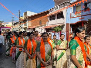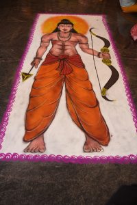 या गाण्याच्या ओळी सोमवारी शहरवासियांच्या उत्साहामुळे सार्थ ठरल्या. रांगोळ्या रेखाटून, तोरणे लावून, भगवे ध्वज फडकावून फुलापानांची उधळण करून श्री रामलल्ला मूर्ती प्रतिष्ठापनेचा सोहळा बेळगावकरांनी अपूर्व उत्साहात साजरा केला आणि खऱ्या अर्थाने शहरात रामभक्तीचा गंध दरवळला. 22 जानेवारी रोजी अयोध्या येथे श्री रामलल्ला मूर्तीची प्रतिष्ठापना होईल, असे पंतप्रधानांनी जाहीर केल्यानंतर पूर्ण आठवडा शहर राममय झाले होते. आठवडाभरापासूनच राममंदिरांची स्वच्छता करून रंगरंगोटी करण्यात आली. त्याचबरोबर शहरातील अन्य मंदिरांचीही स्वच्छता झाली. मंदिरांमध्ये धार्मिक कार्यक्रमांचे आयोजन करण्यात आले. तर गल्लोगल्ली कार्यकर्त्यांनी विविध उपक्रम करून हा सोहळा यशस्वी केला. सोमवारी सकाळी ठिकठिकाणी प्रभातफेरी, पालखी मिरवणूक, शोभायात्रा, सामूहिक रामरक्षा पठण, हनुमान चालिसा पठण असे कार्यक्रम सुरू झाले. शिवाय प्रत्येक गल्लीमध्ये राममूर्तीची प्रतिमा किंवा मूर्ती ठेवून तिची सजावट करून पूजा आणि रामरक्षा पठण करण्यात आले. विशेष म्हणजे शहरातील असा कोणताही भाग नव्हता की जेथे राममूर्तीचा उद्घोष झाला नाही. बेळगावमध्ये या सोहळ्याचा उत्साह अपूर्व होता. शनिवारी दुपारपासूनच कार्यकर्ते तयारीला लागले होते. गल्लोगल्ली कोणी भगव्या पताका लावल्या, कोणी बल्ब लावून परिसर उजळवला, कोणी पूर्ण गल्लीमध्ये विद्युत रोषणाई केली. सोमवारी झालेल्या महाप्रसादासाठी रविवारी दुपारपासूनच कार्यकर्ते खपत होते. रविवारी रात्री शहरातील बहुसंख्य गल्ल्यांमध्ये महिलांनी कलात्मक अशा रांगोळ्या रेखाटल्या.