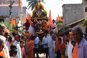 विठ्ठलदेव गल्ली, शहापूर येथील वेंकटेश्वर देवस्थानाच्यावतीने श्रीरामाच्या मूर्ती प्रतिष्ठापनेच्या निमित्ताने रथ काढण्यात आला. वास्तविक, या मंदिरातर्फे दसऱ्यादिवशी रथ काढण्यात येतो. परंतु, या दिवसाचे ऐतिहासिक व धार्मिक महत्त्व लक्षात घेऊन मंदिरातर्फे सोमवारी रथ काढण्यात आला. देवस्थानापासून आचार्य गल्ली आणि परिसरामध्ये हा रथ काढण्यात आला. तेव्हा महिलांनी ठिकठिकाणी श्रीरामाच्या मूर्तीची आरती केली. त्यानंतर देवळामध्ये महाआरती होऊन प्रसाद वितरण करण्यात आले.