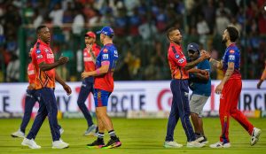 आरसीबी 19.2 षटकात 6 बाद 178 (विराट कोहली 77, ग्रीन 3, पाटीदार 18, मॅक्सवेल 3, रावत 11, दिनेश कार्तिक नाबाद 28, लोमरोर नाबाद 17, अवांतर 18, रबाडा 2-23, ब्रार 2-13, सॅम करन 1-30, हर्षल पटेल 1-45).