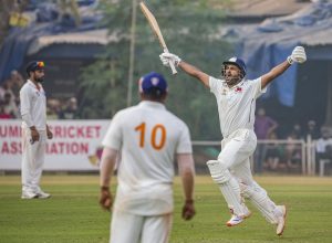 मुंबईकडून दुसऱ्या डावाची सुरुवात रोहित शर्मा आणि यशस्वी जैस्वाल यांनी केली. या दोघांनीही आक्रमक सुरुवात करताना अर्धशतकी भागीदारी केली. रोहित शर्माने सुरुवातीपासूनच वेगवान धावा करण्याचा प्रयत्न केला. त्याने तीन षटकार ठोकून आपल्या फलंदाजीचे संकेत दिले. रोहित शर्मा सेट झाला असं वाटत असतानाच, युधवीर सिंगने त्याला बाद केलं. रोहित 28 धावा करुन माघारी परतला. यानंतर हार्दिक तोमोर 1, यशस्वी जैस्वाल 26, श्रेयस अय्यर 17, अजिंक्य रहाणे 16, शिवम दुबे 0 आणि शाम्स मुलानी 4 धावांवर बाद झाल्याने, मुंबईची अवस्था 7 बाद 101 अशी झाली होती. पण, शार्दुल ठाकूरने डावाची सूत्रे हातात घेतली. तनुष कोटियनसोबत त्याने 173 धावांची महत्वपूर्ण भागीदारी साकारली.