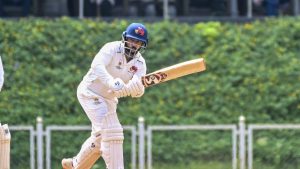 मुंबई पहिला डाव 81 षटकांत 8 बाद 278 (रहाणे 31, शिवम दुबे 28, शम्स मुलानी 91, तनुष कोटियान खेळत आहे 85, कंबोज 3 बळी, सुमीत कुमार 2 बळी).