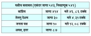 - उत्तर भारतात जनता पक्ष तर दक्षिण भारतात काँग्रेस अशी विजयविभागणी