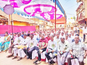 यावेळी प्राथमिक शाळेच्या विद्यार्थिनींनी गणेशवंदन तर कलमेश्वर हायस्कूलच्या विद्यार्थिनींनी ईशस्तवन व स्वागतगीत सादर केले. छत्रपती शिवाजी महाराजांच्या मूर्तीचे पूजन महाराष्ट्र राज्याचे पणन संचालक व अतिरिक्त आयुक्त (सहकार) दिनेश ओऊळकर यांच्या हस्ते करण्यात आले. यावेळी दीपप्रज्वलन सी. ए. शिवकुमार शहापूरकर, माजी आमदार मनोहर किणेकर, तुकाराम बँकेचे चेअरमन प्रकाश मरगाळे, अॅड. के. एस. साळवी, जि. पं. माजी सदस्या प्रेमा मोरे, ता.पं. माजी सदस्या नीरा नारायण काकतकर, तुळसा पाटील, सह्याद्री सोसायटीचे माजी चेअरमन रघुनाथ बांडगी, ग्रा. पं. सदस्य गणपत पाटील, कल्लाप्पा पाटील, यतोजी, शिवाजी शहापूरकर या मान्यवरांच्या हस्ते दीपप्रज्वलन व फोटो पूजन करण्यात आले. प्रमुख वत्ते म्हणून बोलताना पी. डी. पाटील म्हणाले, संस्थेचे वय जसे वाढत जाते तसे त्या संस्थेचे वैभवही वाढले पाहिजे. आणि हे काम संचालक मंडळाच्या हाती आहे. जिथे जिथे महिलांच्या संस्था आहेत त्या ठिकाणी कोणताही गैरव्यवहार, भ्रष्टाचार दिसून येत नाही. स्वच्छ पारदर्शक कारभार सुरू असल्याचे आढळते. मात्र तेच जिथे पुरुष मंडळी संस्था, ग्रामपंचायत व इतर कुठल्याही संस्थेत जा तेथे कोठे ना कुठे पाणी मुरतानाच दिसते. यासाठी सहकार क्षेत्रात लक्ष्मीला सांभाळले पाहिजेत. ती फार चंचल असते, घोळ झाला, अविश्वास झाला, तडा गेला कि ती मग निघून जाते. याचे भान ठेवून संचालक मंडळाने वाटचाल करावी, असा मौलिक सल्लाही पाटील यांनी दिला.
