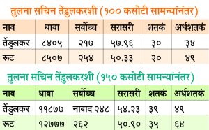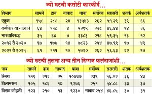 विराट कोहलीप्रमाणं घणाघाती ‘कव्हर ड्राईव्ह’ वा ‘ग्लॅमर’ रूटकडे नाहीये. तो विल्यमसनइतका शांत, संयमी सुद्धा नाही. पण ज्यो व्यवस्थित किल्ला उभारतो ते उजव्या यष्टीवरील चेंडूला फ्लिकच्या साहाय्यानं मिडविकेट क्षेत्रातून हाणून वा पॉईंटची दिशा दाखवून किंवा क्षेत्ररक्षकांमधील अंतर शोधून आणि फिरकी गोलंदाजांविरुद्ध खेळताना ‘स्ट्राईक’ फिरवत राहण्यावर भर देऊन...त्याच्या भात्यात बऱ्यापैकी रिव्हर्स स्वीपही दडलाय. या सर्वांच्या मदतीनं ज्यो रूटची इंग्लंडनं जिंकलेल्या कसोटींचा विचार करता चौथ्या डावातील सरासरी पोहोचलीय ती 113 वर अन् त्यात समावेश दोन शतकांचा...रूट सध्या सचिन तेंडुलकरपेक्षा मागं आहे तो 2 हजार 378 धावांनी नि सारं भवितव्य ठरविणार ती येऊ घातलेली अॅशेस मालिका...सचिननं 200 कसोटींत नोंद केली ती 15921 धावांची. त्यात नाबाद 248 ही सर्वोच्च वैयक्तिक धावसंख्या, तर सरासरी 53.78. त्यामध्ये समावेश 51 शतकं नि 68 अर्धशतकांचा !
