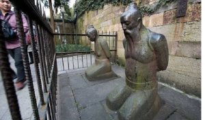 चीनच्या इतिहासातील कुख्यात खलनायकाला तेथील लोक अद्याप विसरलेले नाहीत. हा खलनायक किन हुई आणि त्याची पत्नी वांग शी आहे. चीनच्या हांगझोउ शहराच्या वेस्ट लेकनजीक एका मंदिरानजीक या दोघांच्या लोखंडी मूर्ती बसविण्यात आल्या आहेत. या मूर्ती गुडघ्यावर बसलेल्या स्वरुपात असून चेहरे झुकलेले आणि त्यांचे हात मागे आहेत. .मूर्ती पाहिल्यावर त्यांच्या चेहऱ्यावर पश्चातापाचा भाव असल्याचे वाटते, येथे येणारा पर्यटक या मूर्तींना थप्पड लगावतो आणि लाथ मारतो. तर काहीजण या मूर्तीवर थुंकतात. या निर्जीव मूर्तींसोबत अशा विचित्र वर्तनामागे सूडाची भावना आणि विश्वासघातासाठी दंड देण्याचा हेतू आहे. चीनचे नागरिक चिनी राष्ट्रनायकाचा विश्वासघात करणाऱ्या या दोन व्यक्तींच्या मूर्तीना मागील 800 वर्षांपासून थप्पड लगावत अन् लाथ मारत आहेत. चीनमध्ये ही परंपरा आजही जारी आहे.