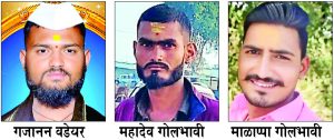 वरील तिघेजण सोमवारी हिरो स्प्लेंडर मोटारसायकल नं. केए 23 ईव्ही 7883 वरून मुगळखोडहून हारुगेरीकडे निघाले होते. दरम्यानच्या रस्त्यावर अज्ञात भरधाव वाहनाने त्यांच्या मोटारसायकलला जोराची धडक देऊन पलायन केले. त्यावेळी झालेल्या भीषण अपघातात गजानन आणि महादेव हे दोघेजण जागीच ठार झाले. तर माळाप्पा हा गंभीर जखमी झाला. त्याच्या डोक्याला जबर दुखापत झाल्याने त्याला उपचारासाठी बेळगावातील एका खासगी इस्पितळाकडे हलविण्यात येत होते. मात्र त्याचाही मध्यरात्री 2.30 वाजता मृत्यू झाला.