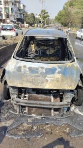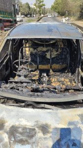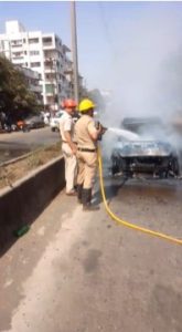 गाडी रस्त्याच्या मध्यभागी होती. त्वरीत अग्निशामक दलाकडून आग आटोक्यात आणण्यात आली.
