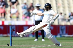दिग्गज खेळाडू केन विल्यम्सनने मात्र 9 चौकारासह 44 धावांची खेळी करत संघाचा धावफलक हलता ठेवला. त्याला मॅथ्यू पॉट्सने बोल्ड केले मात्र, विल्यम्सन ज्या विचित्र पद्धतीने बोल्ड झाला, ते पाहून क्रिकेट चाहत्यांना धक्का बसला आहे. त्याचा अशाप्रकारे बोल्ड होण्याचा व्हिडिओ सोशल मीडियावर व्हायरल होत आहे. वास्तविक, विल्यमसनने 59 व्या षटकातील शेवटचा चेंडू हलक्या हाताने खेळला. परंतु चेंडू चुकला आणि स्टंपजवळ गेला. यानंतर विल्यमसन पटकन वळला आणि त्याने पायाने चेंडू रोखण्याचा प्रयत्न केला. मात्र असे करताना चुकीने त्याचा पाय स्टंपवर आदळला. अशाप्रकारे विल्यमसनने स्वत:च स्वत:ला बाद केले.