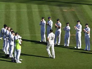 इंग्लंडविरुद्ध तिसऱ्या टेस्टमध्ये टीम साऊदी आपल्या कारकिर्दीचा शेवटचा कसोटी सामना खेळणार आहे. साऊदी जेव्हा कसोटी क्रिकेटच्या मैदानावर उतरत होता तेव्हा त्याच्या चेहऱ्यावर निराशा स्पष्ट दिसत होती. निवृत्तीच्या निमित्ताने त्याचे कुटुंबीयही मैदानावर उपस्थित होते. आपल्या लाडक्या मुलीला कडेवर घेऊन तो मैदानात उतरला. या वेळी सर्व सहकारी त्याच्या मागे राहिले. यादरम्यान, त्याने 10 चेंडूत 23 धावांची खेळी साकारली. शेवटच्या कसोटीच्या पहिल्या डावात 3 षटकार मारल्यानंतर साऊदीने अनेक दिग्गजांना मागे टाकले. कसोटीत सर्वाधिक षटकार मारणाऱ्या खेळाडूंच्या यादीत तो चौथ्या स्थानी आला आहे. त्याच्या नावे कसोटीत 98 षटकार आहेत. साऊदीच्या नावावर आता कसोटीत 98 षटकार आहेत आणि या यादीत तो चौथ्या क्रमांकावर आला आहे. त्याच्यानंतर ख्रिस गेल आणि जॅक कॅलिसचे नाव आहे. या यादीत इंग्लंडचा बेन स्टोक्स 133 षटकारासह अव्वलस्थानी आहे.