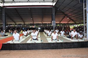 बेळगाव : मराठा लाईट इन्फंट्री रेजिमेंटल सेंटरच्यावतीने आंतरराष्ट्रीय योग दिनाचे औचित्य साधून योगासन शिबिराचे आयोजन करण्यात आले होते. कमांडंट ब्रिगेडियर जॉयदीप मुखर्जी यांच्या हस्ते शिबिराचे उद्घाटन झाले. उत्तम आरोग्यासाठी प्रत्येक व्यक्तीला योगासनांची गरज आहे. यामुळे नियमित योगासने करावीत, असे आवाहन त्यांनी केले. जवान, त्यांचे कुटुंबीय व शाळेच्या विद्यार्थ्यांनी एकत्रितरित्या योगासने केली. प्राणायाम, हात योगा, ध्यान धारणा यांचे प्रात्यक्षिक दाखविण्यात आले. भारतीय जवानांनी नेहमीच आपल्या शौर्याचे दर्शन घडविले आहे. त्यांच्या मानसिक स्वास्थ्यासाठी हे शिबिर आयोजित करण्यात आले होते.